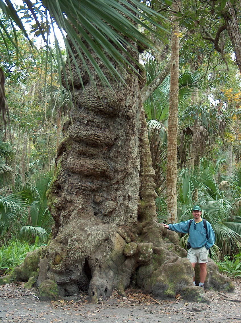 The slightly higher ground of the hammocks support jungle, complete with lianas. Ancient oaks covered in mosses, air plants and bromeliads dominate the canopy. The mid level is full of wild orange and grapefruit trees interspersed with palms and upward thrusting palmettos. Thick coverings of ferns carpet the ground and the odd scooped out orange is evident amidst the debris. The oranges look inviting but on a previous visit we peeled and attempted to eat one. Believe me, the fruit we buy in the shop bears little if any resemblance to it's wild cousins and is to be given a wide birth unless it comes in the guise of a milk shake sold at the park concession.