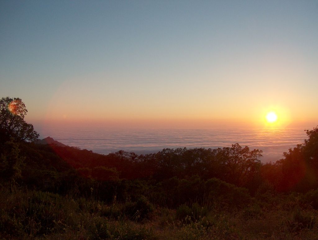 Our last real stop before heading for England was at Fremont Peak State Park up in the hills paralleling the coast. Fremont’s particular geography results in blankets of thick white fluffy cloud rolling in from the sea, over the coastal plain and sitting below the modest peaks of the park. Looking out across this make believe world is a truly magical experience and at sunset, the light produces stunning effects as the softly rippled surface becomes suffused in various shades of orange and red.