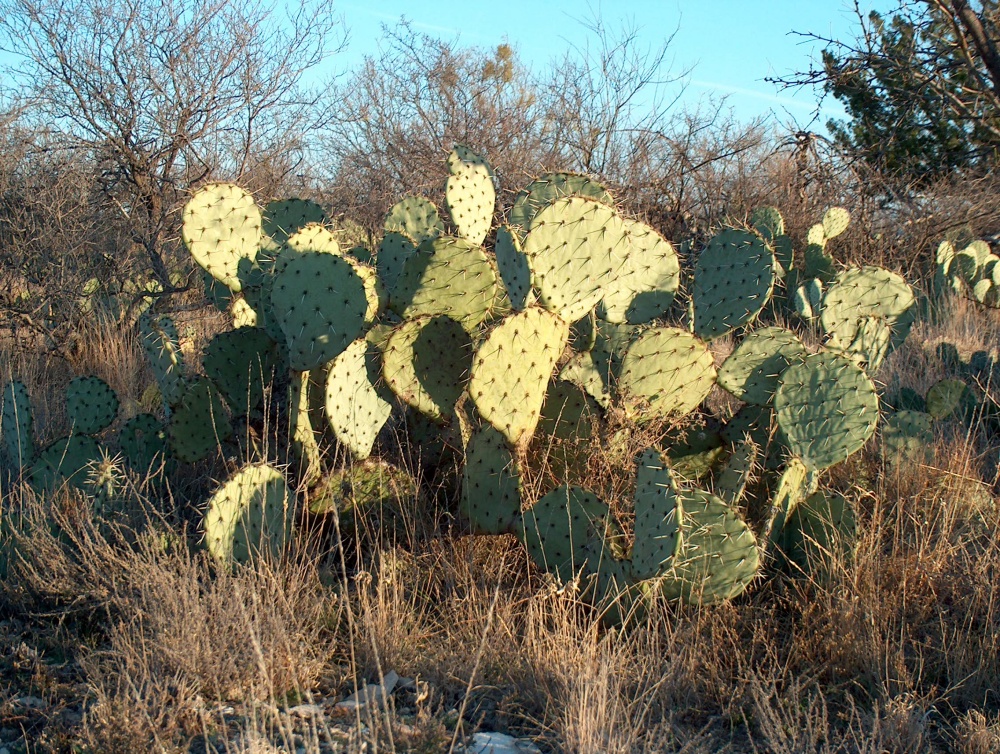 Cactus We're parked in the San Angelo State Park and will stay here until we head for Denver in another few days. Its gently rolling open vistas are yellowed from the lack of rain and the reservoir has left its boat ramps high and dry. There are large swathes of cacti and although the trees are bare of leaves they are festooned with more mistletoe than there are kisses in the world. We're close to the hundredth meridian and so it's a haven for bird watching, being at the cross over point for birds from both the east and west. I have to mention the Pyrrhuloxia if for no other reason than its name demands attention and neither of us had seen one before. At dusk we've watched the Black-tailed Jackrabbits as they forage for breakfast and at dawn, the deer, as they munch a quick supper before heading to bed.