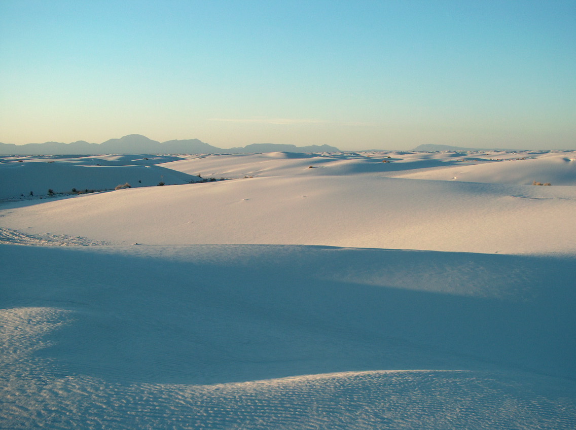 It is these apparently brownish crystals of gypsum that are gradually eroded by the wind forming smaller and smaller grains that buff against each other, scratching the surfaces and creating the white appearance of the dunes. The wind also sorts out the wheat from the chaff, blowing the lighter dust particles up and away while slowly moving the sand grains into the dune field.