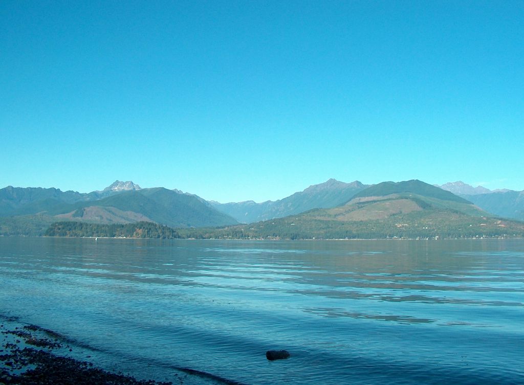 The travelers arrived tired but excited at Scenic Beach State Park after long journeys from Wisconsin and Florida. While the campground itself was nothing special, the views from the waters edge, across the sound towards the mountains of the peninsula were worth the detour. The pebbles on the beach were covered with thin algae giving a greenish hue to the shore and the stretch was scattered with empty oyster shells prompting strains of The Walrus and The Carpenter to drift through my head.