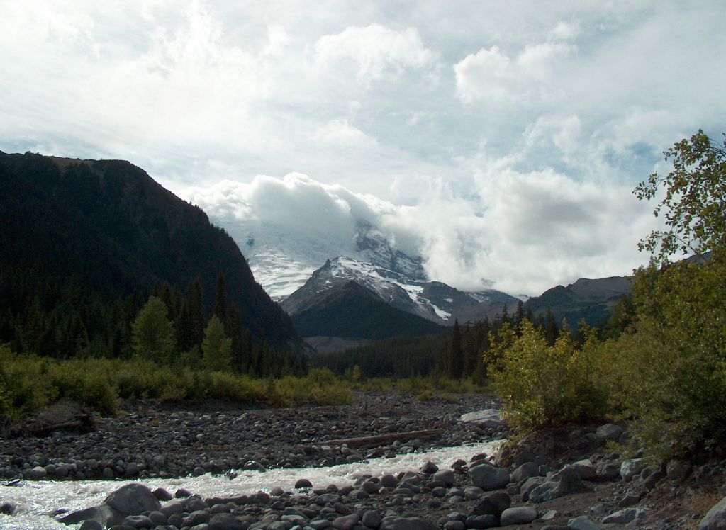 In spite of the potential dangers, at White River, we camped on the bank by the white glacial melt water looking up towards the monolith. The characteristic volcano shaped mountain towers above the surrounding Cascades and on a clear day is visible from Seattle, sixty miles away. It is the most glaciated mountain in the lower forty-eight but the icy cloak belies the mountains true nature.