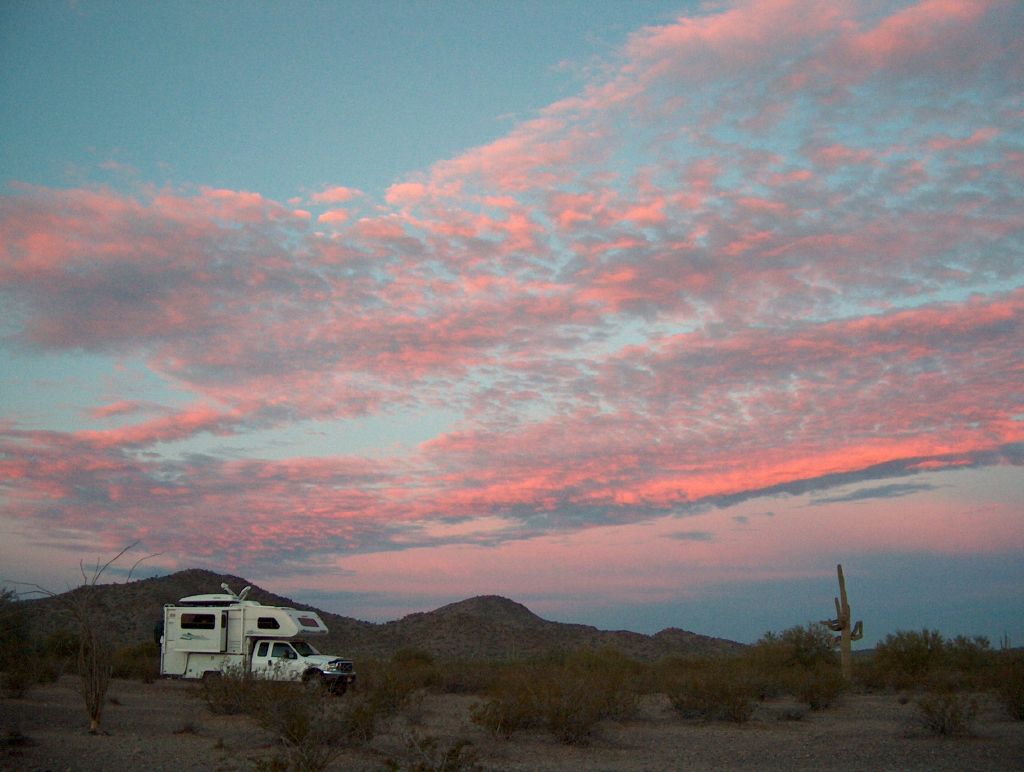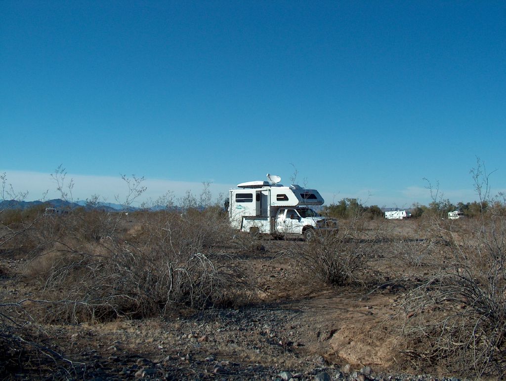 The sun is shining, daytime temperatures are warm and the desert landscape stretches off into the distance with its sparse vegetation. Travelling south through the state we began to notice an inordinately large number of RV's. By the time we reached Lake Havasu City, mid way down the state, there was a serious congestion with vehicles crammed into numerous RV parks and a fair number already set up on BLM land. Rigs from the snow bound northern states and Canada feature prominently in this milieu and we began to experience a vague sense of belonging to a vast migratory herd moving towards the winter-feeding grounds at Quartzsite.