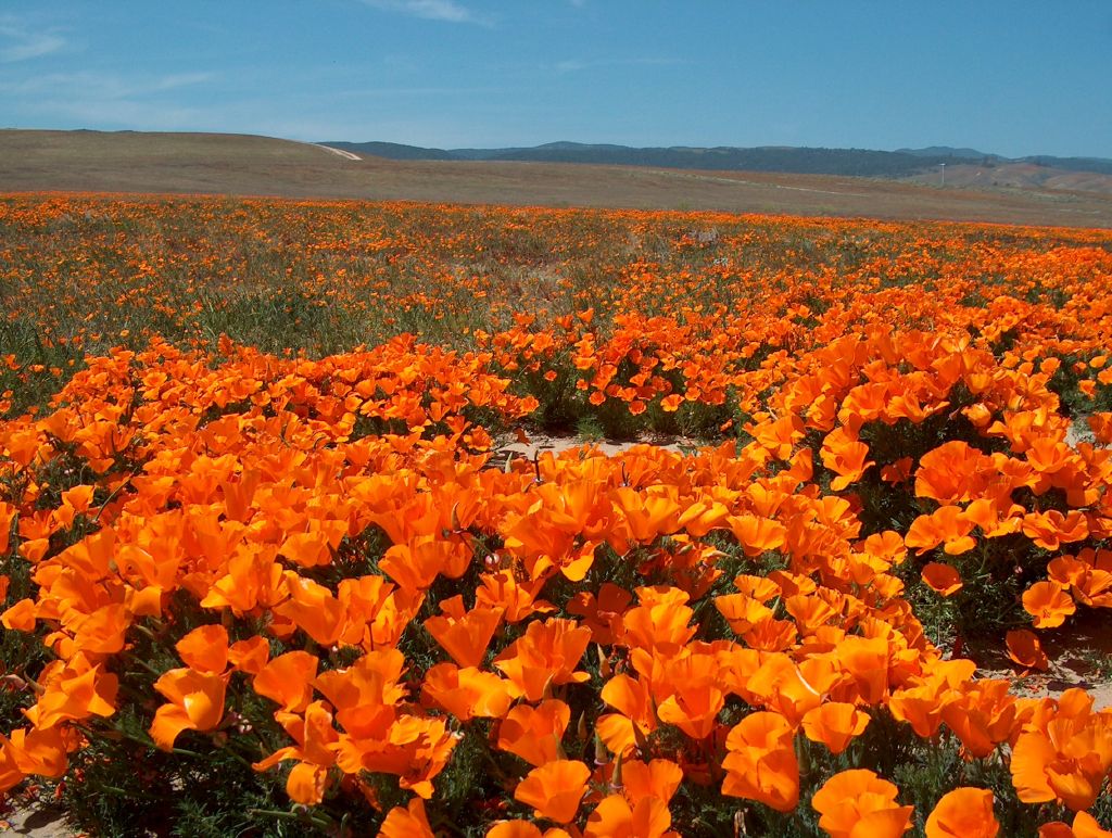 South of Maricopa the hills explode in a tapestry of impressionist colour. Vast areas of California Poppy and Wild Lupine smother the slopes in a carpet of orange and purple, breathtaking in it's boldness and beauty.