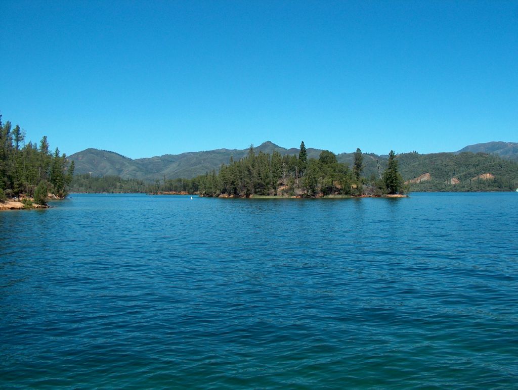 This part of Northern California is probably the least populated area of the whole state. Pine clad hills are the norm and black bears still roam seeking the berries off the Manzanita bushes. Ample evidence of their presence is found on the Davis Gulch Trail in the form of berry filled scat although the influence of people is also obvious in the ketchup sachets that the bears have attempted to digest. Much of the trail follows the line of the reservoir allowing closer looks at the little coves along its shore and wide views out across the water.