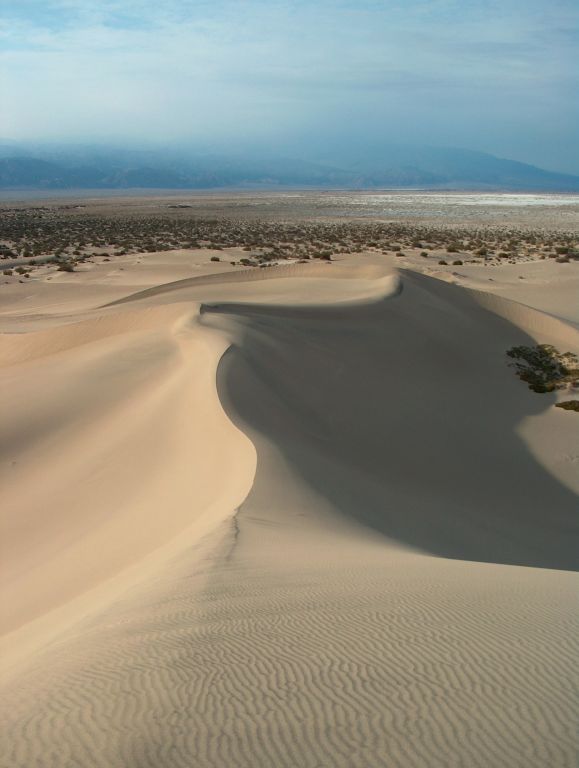 Away from the Salt, the Park has many other faces. The sand dunes were perhaps the most surprising; soft full curves, steep convex slopes, shapes defined by sharp ridge lines and the late afternoon light throwing an aspect of shadows and tones, accentuating the beautiful geometry. It was a hard slog to the top, every last joule of energy sapped with each footfall, no momentum sustainable: on the steeper slopes a battle to maintain any headway as each step slipped backwards with the downward movement of the grains but still worth the effort, to sit in the silence on the warm sand and simply enjoy being there.