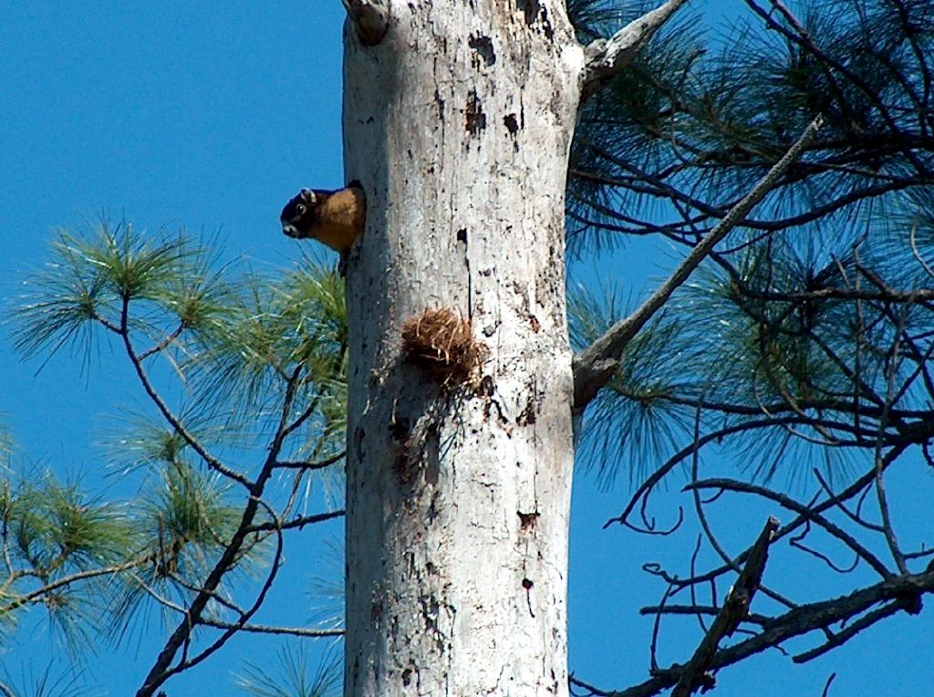 Out on the Palmetto Trail, Sterling spotted what came to be known as a Rodent of Unusual Size (RUS). It turned out to be Sherman's Fox Squirrel and as squirrels go he was certainly large. This one looked to be wedged in an old woodpecker hole with his head and front paws sticking out. He was quite content, surveying his surroundings and basking in a little warm sunshine oblivious to the interest he was generating below. We had some doubt as to how easily he might be able to extricate himself but given there were no squeals of distress we assumed he was all right and went on our way.