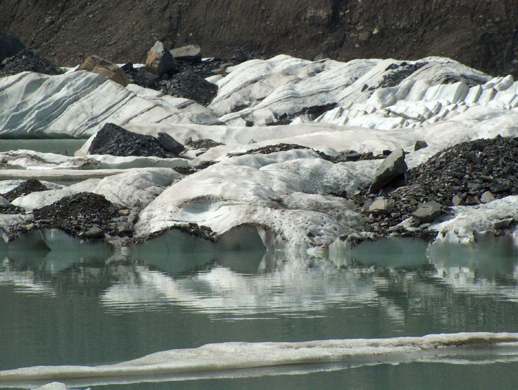 The immediate melt-water gathers in a small lake just below the glacier, the shade a pale grayish green, icebergs floating, the smaller ones slowly drifting in the gentle current. It is a truly magical destination and a great place to eat our sandwiches that by this time had been well and truly squashed at the bottom of our rucksacks. On the way back down, the trail on the north side of Lake Josephine had been closed as a bear and her cubs were busy picking the berries. For their safety and ours we made our way back along the opposite shore and were ready for a refreshing beverage by the time we got back to Many Glacier Hotel.