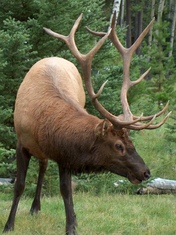 Strike action by Canadian National Park staff continued and only one campground remained open in Jasper National Park. Whistlers has an unbelievable seven hundred and eighty one pitches but at this time of year many of the loops are closed, the visitors comparatively thin on the ground. With the autumn come the elk in rut, gathering in small herds of cows and last years calves, each group followed and herded by a proprietary bull who will take on all comers with his full head of antlers.