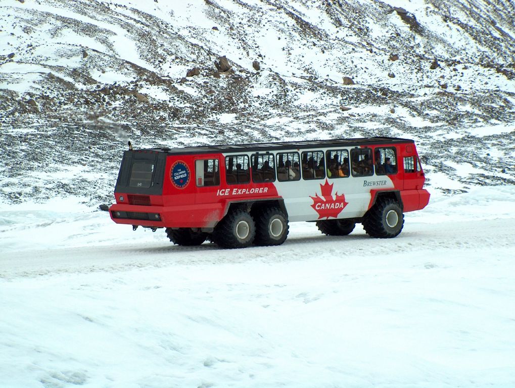 There was little sense of warmth as we headed up towards the Columbia Icefield on what turned out to be the highlight of the stay in Jasper. There is no RV campground in this area but attached to the Icefield Visitor Centre is a car park with the most fantastic views up onto the Athabasca Glacier and this is where we parked for a few days. Walking into the visitor centre is a bit of a shock, a little like descending into the London Underground at rush hour: if you attempt to go against the flow, you're in trouble. However the mayhem only lasted about four hours a day and by late afternoon most of the day visitors had left and the traffic on the Icefields Parkway was already settling to a trickle. The main attraction for most visitors is the specialized bus tours out onto the glacier in a vehicle known as a SnoCoach.