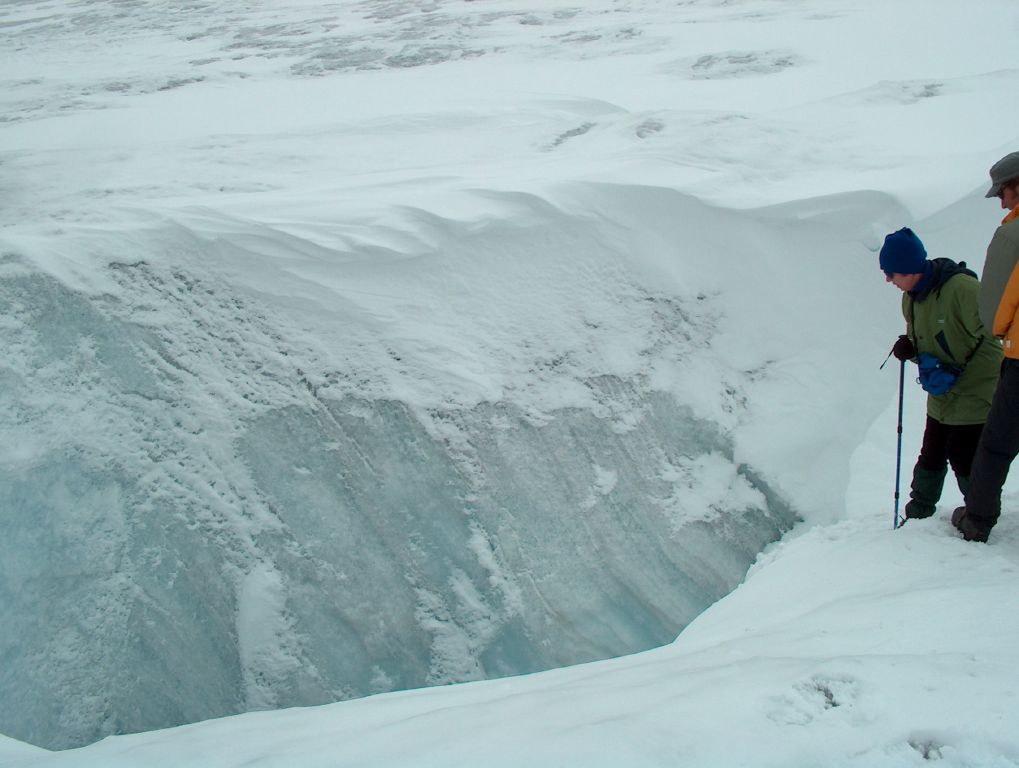 The weather out on the Glacier is changeable and having started out in relatively few layers, we piled the fleece on as the sun vanished and the wind came howling across the ice reminding us that the Columbia Icefield from which the Athabasca flows is only just at the top of the valley.