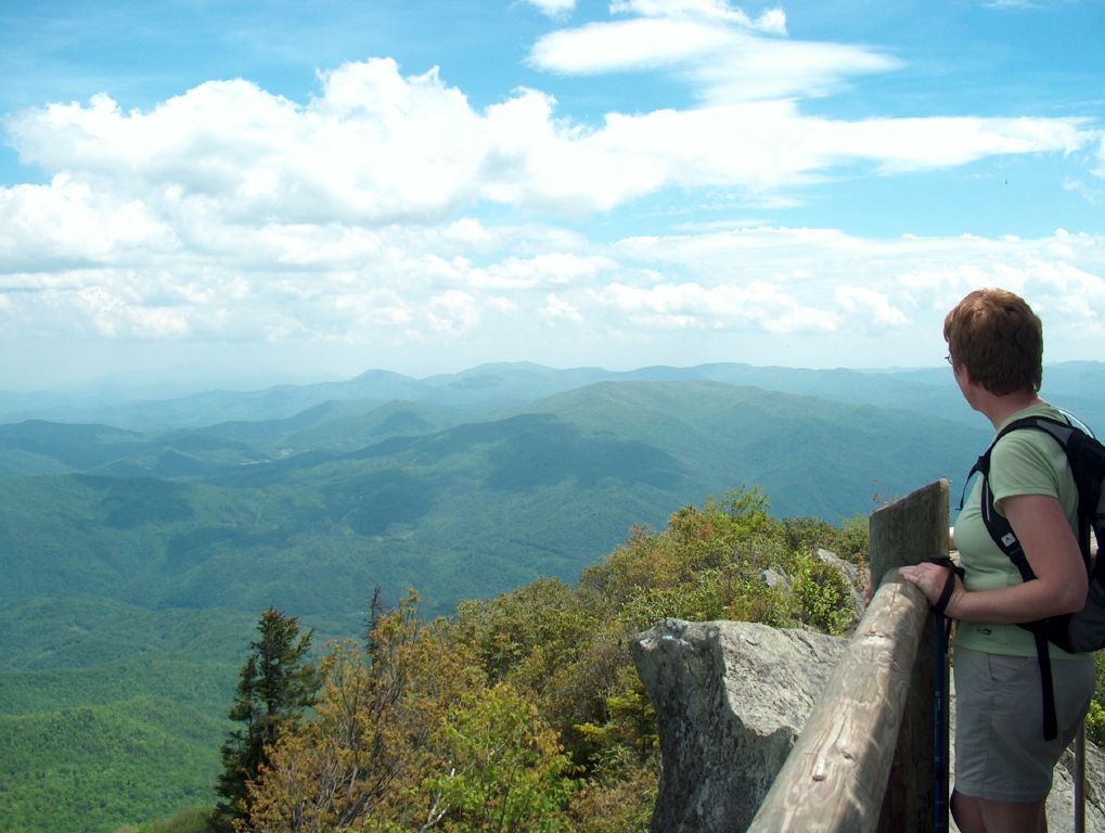 Not to be tricked a second time we discussed the possibilities with a Ranger who informed us that only a couple of the Balds were naturally occurring, the others having been cleared by settlers for grazing and had been given the appellation as a consequence. Once the clearing stopped the vegetation reclaimed the land, hence no views. He recommended the trail to Mount Cammerer and with this in mind we crossed the Park to the much more remote Cosby Campground which was virtually empty. The trail was a steep demanding climb some five miles long but the views when we reached the observation tower at the peak were nothing short of spectacular.