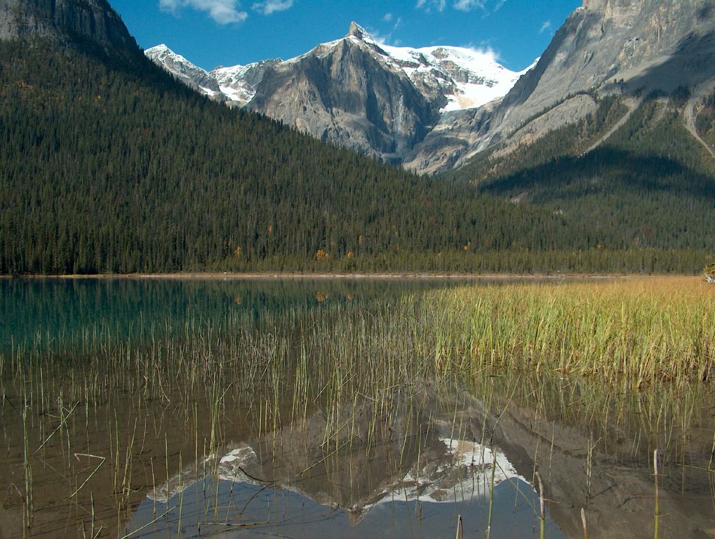 Adjacent to Banff is the much smaller Park of Yoho, named for a Cree expression of awe and wonder, and aptly chosen. The season was coming to an end and only one campground remained open, unfortunately positioned in close proximity to both highway and rail line; not only this but also at the bottom of a steep hill where trucks employed their air brakes and the squeal of metal on metal as the trains struggled to control their progress echoed out across the valley. On the plus side the mountains were immediate and dramatic, the autumn golds contrasting against the dark evergreens and the sun bathing the valley bottom until late in the afternoon.