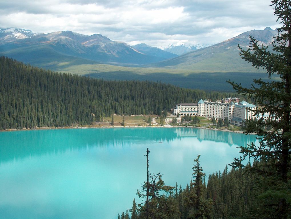 Lake Louise for which the area is named is a shock even after the number of people at Moraine. A huge multi-storey hotel rises at the eastern end of the lake and the concreted promenade seems somehow incongruous after the four-kilometer trail up from the campground. The northern shore is a buzz of activity along the paved path and so we took the loop around the opposite side. There were few people out here mainly because the course crosses steeply up the mountainside, numerous rocks and roots underfoot, the going slick. The setting is not on the same majestic scale as Moraine and due to the light, the most impressive vista was from Fairview Lookout, back to the hotel and out across the mountains beyond, an excellent publicity shot for the accommodations on offer.