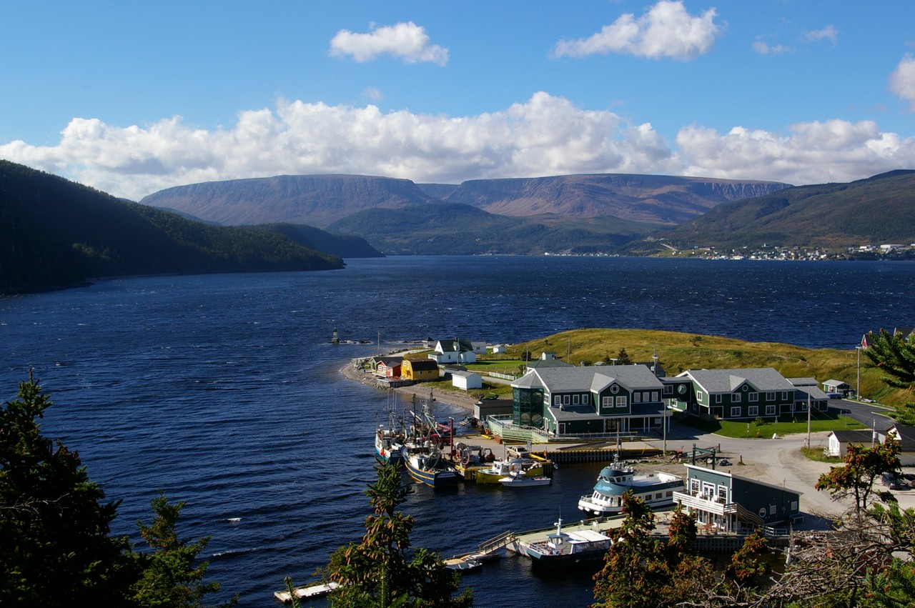 The waters of Bonne Bay reach several kilometres inland from the Gulf of St. Lawrence before splitting into two significant tidal channels known as East Arm and South Arm. Norris Point is a naturally protected harbour, on a small area of land jutting out into the waters between the two arms. Like many settlements here, it is strung out, lacking an identifiable centre, the houses intermingled with occasional small businesses.