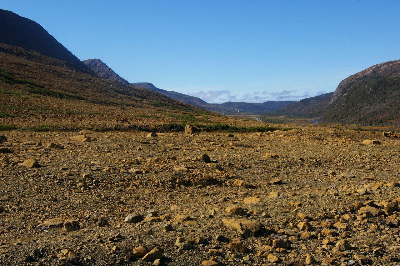 The highlight of the west coast is Gros Morne National Park and that's where we're headed next: to Lomond campground on the East Arm of Bonne Bay, looking across the water to the steep, scree covered slopes of Killdevil Mountain. It's quite the setting and virtually empty at this time of year. We've come to get some more work done and to wait out the bad weather that is forecast but also to see something of this side of the park.