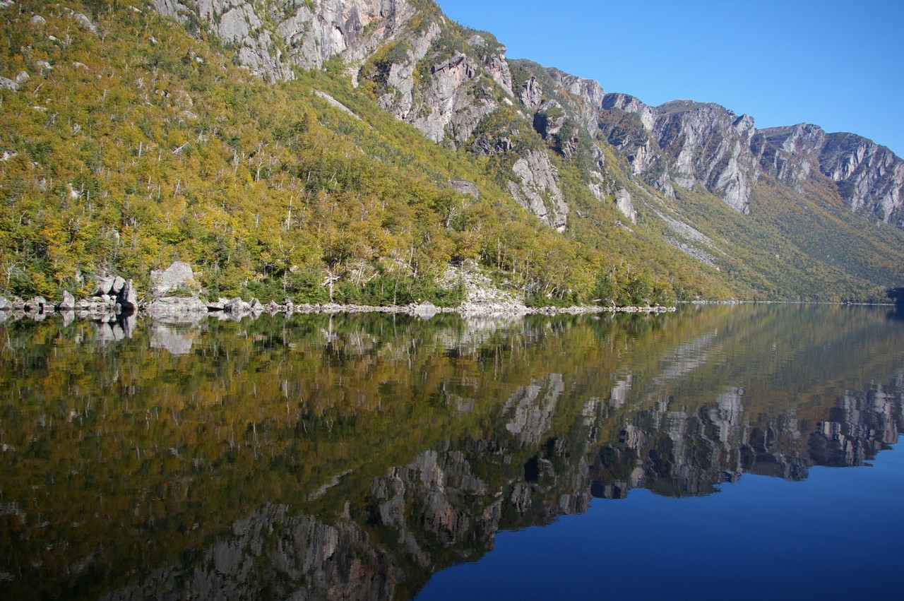 Unlike a true fjord the water in Western Brook Pond is fresh, the original salt water long since gone. A number of factors combine to produce some of the purest water on the planet, so pure that it barely conducts electricity. While the surface water may reach sixteen degrees Celsius by late September, the depths remain at a steady five degrees making it a challenge for many living organisms and also slowing the process of decay. Another characteristic of the water is that it is very low in nutrients and consequently cannot support the algae which constitute the lower links of a water based food chain. While the body of water may be fascinating it is the stunning scenery which steals the limelight.