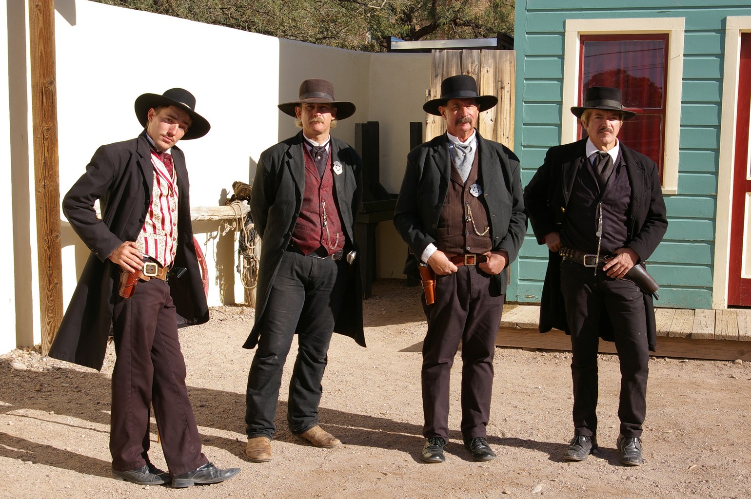 the Earp brothers, Wyatt, Virgil and Morgan facing the Clanton brothers,