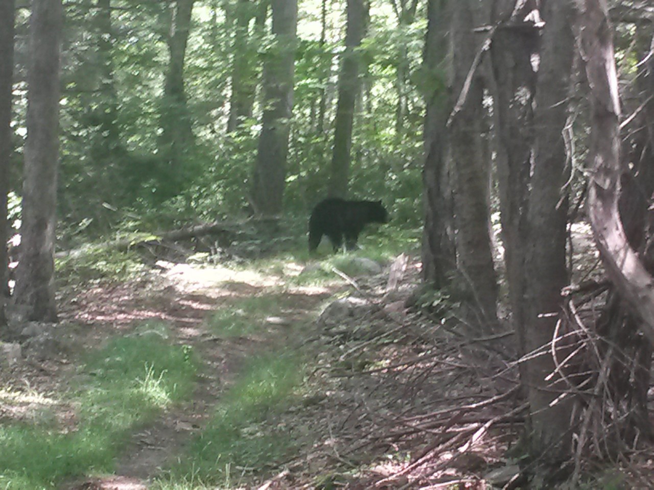 Blurred Black Bear Weighed down by so many rules and inhibited in our normally annoying conduct we moved on to look for something a little less regulated. Many of the campgrounds in the eastern states charge at least $25 for a primitive site and so it was a nice change to find Mahlon Dickerson Reservation offering water and electric for $20. The fact that they had vacancies over a weekend made us a little suspicious but we found it to be one of the nicer campgrounds we had visited, except for the mosquitos that is. The trails were well marked albeit still quite boggy in places after all the rain and of course the mosquitos came into their own out in the woods. We were only there a couple of days but returned later that week for another short stay. The second visit was more memorable. Out on the trails we disturbed a pair of Black Bear who had obviously been too absorbed to hear us coming. I’m not sure who was more frightened, they ran off in different directions, one of them stopping on the path in front of us. Sterling managed to get a quick photo on the phone before we slowly backed out of their line of sight. I’ve never been a great one for roller coasters and I suspect it’s because I’m not overly fond of the aftermath of an adrenalin rush like that - shaky legs and a feeling of being depleted. We have seen Bear Aware notices in a few places recently but had thought that they probably meant a bear had been sighted back in 1983. We’re less blasé now; if they’re in New Jersey they could be just about anywhere.