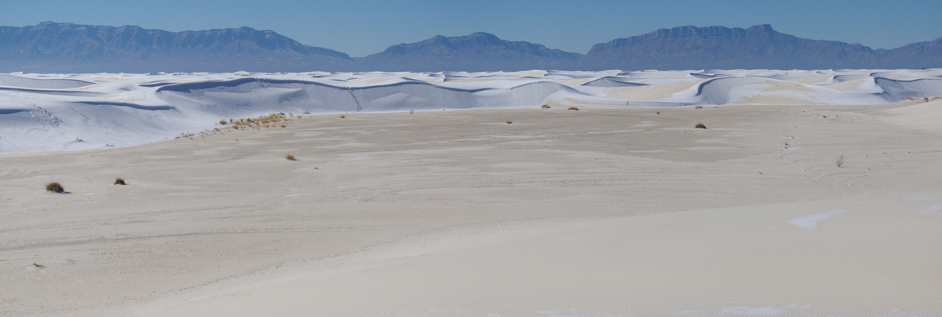 Being so close, we cannot pass without a visit to White Sands National Park. The recent snow gives the dunes an unusual perspective. The alleged colour of the sand proves to be an illusion under the powdery covering. It reminds us of living in Wales, where the sheep, like the dunes, look white until it snows and their true colour is revealed.