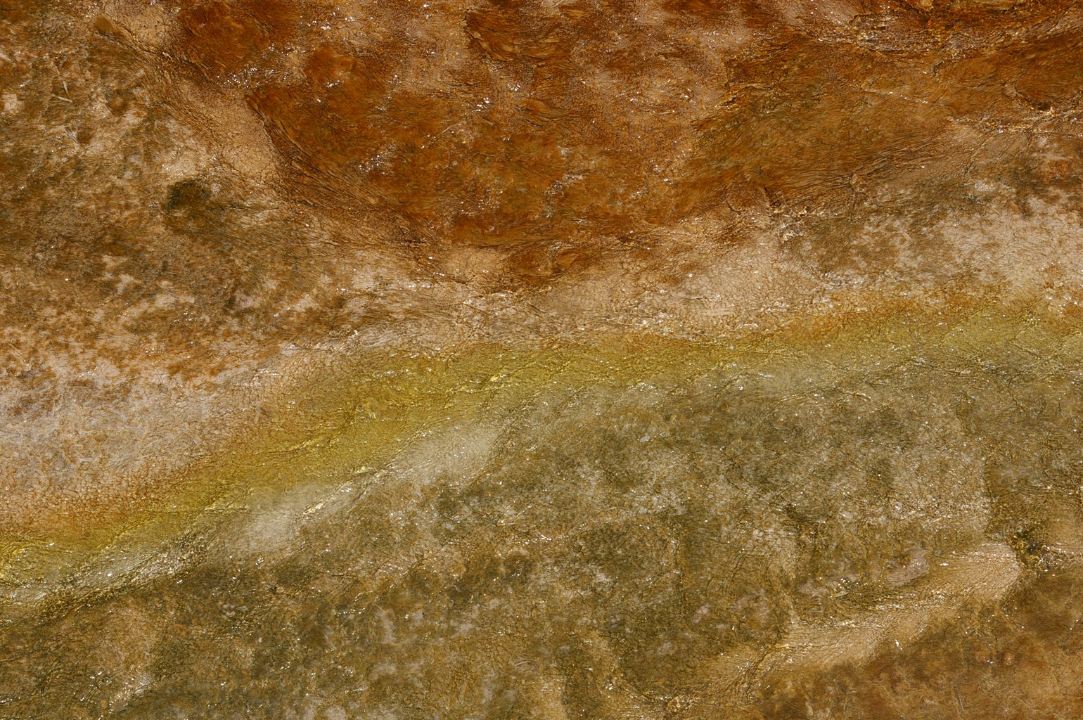Life thrives here, heat-loving microorganisms creating the various colours on display from the yellows and whites to the orangey browns and greens. The surreal abounds: the eyes struggle to order the intricate patterns of minerals deposited by the slightly acidic water and on a wider scale the brain attempts to process the bizarre mixtures of colour and texture. It is a place provoking amazement and wonder where time passes unnoticed, our attention absorbed in the numerous fascinating aspects of this other worldliness.
