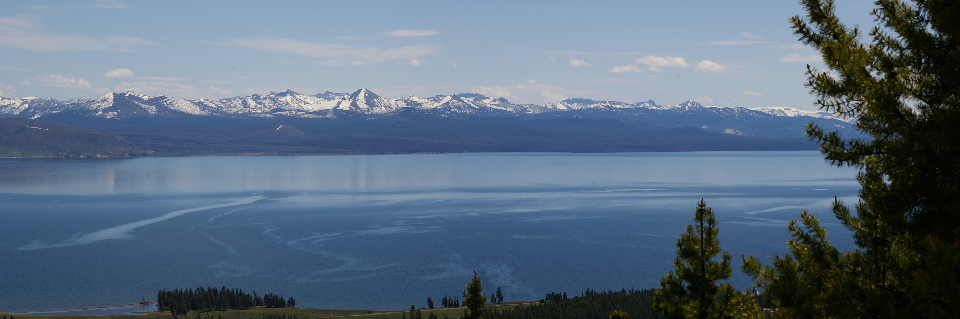 Beneath the surface of Yellowstone Lake the same hydrothermal processes are very much at work creating warm waters where trout proliferate. From a look out point on the Elephant Back Mountain trail the wonderful blue waters of the lake stretch out below, snow capped mountains creating the horizon beneath the paler blue sky. It’s quiet, still and incredibly peaceful as we eat our lunch feasting on the view.