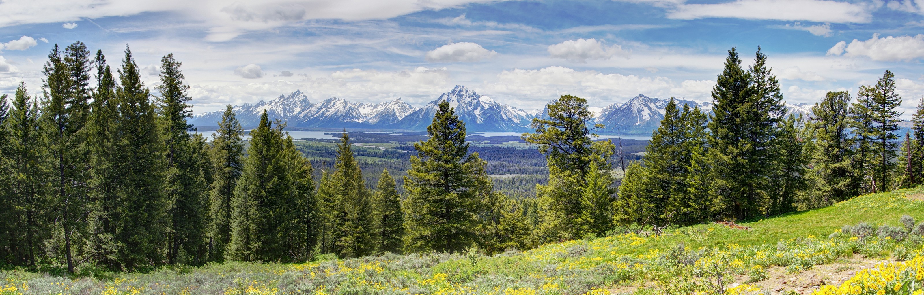 It's hard to imagine an act that could follow the iconic Yellowstone but the sight of the magnificent rugged Teton Range rising steeply from the shores of Jackson Lake is just the ticket. Looking across the water from the east shore, with no foothills to distract attention from the jagged peaks or steep sided canyons, the view is truly magnificent, the snow persisting in the crevices and hollows, accentuating the shapes and angles of this comparatively young range. They dominate the landscape, stilling the spirit, putting life in perspective.