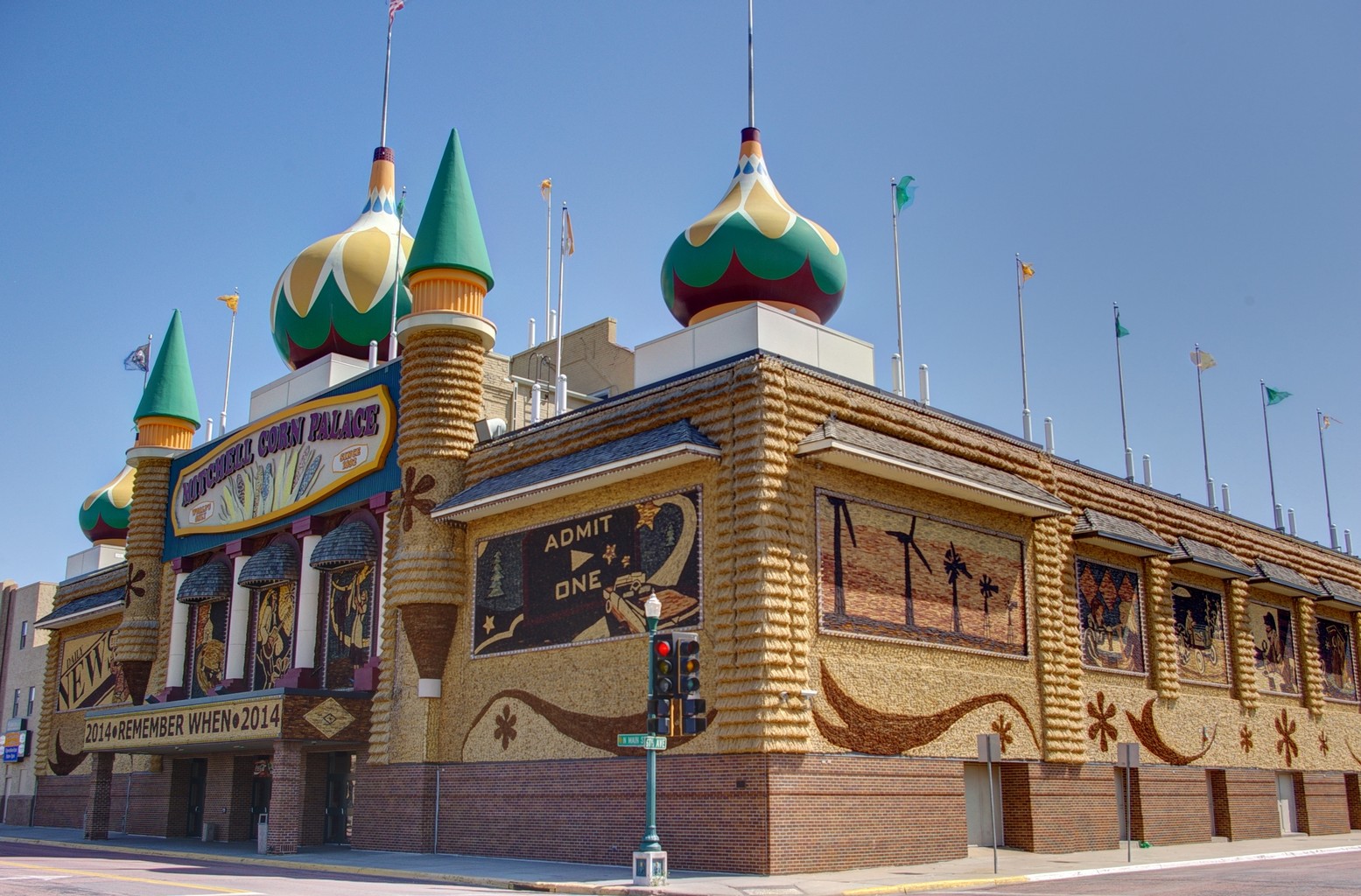 South Dakota has honed an advertising approach based on that well known Borg maxim, “Resistance is futile”. Ubiquitous corny billboards line the interstate, subtly brainwashing us, so that we drift down the off ramp at Mitchell, almost without conscious decision and find ourselves outside the Corn Palace, not quite sure how we got here. I am almost too embarrassed to admit that this is the third time we have sucumbed to the lure of this amazing display of plenty, but shucks, who cares! The Palace was originally conceived by early settlers in an attempt to attract more people to the area and whether it served its purpose back then is almost irrelevant when set against the bus loads of tourists it attracts today.