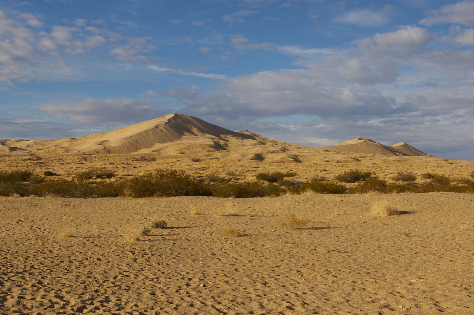 We camp for a night on the edge of Kelso sand dune field, half expecting to see a string of camels appear. The clouds have lifted and in the late afternoon the steep vertical sides of the dunes are cast in shadows, accentuating their shapes as they change colour in the light of the sinking sun. Off in the distance, across the desert floor the lines and shapes of the rugged Providence Mountains become more accentuated as sunset approaches.