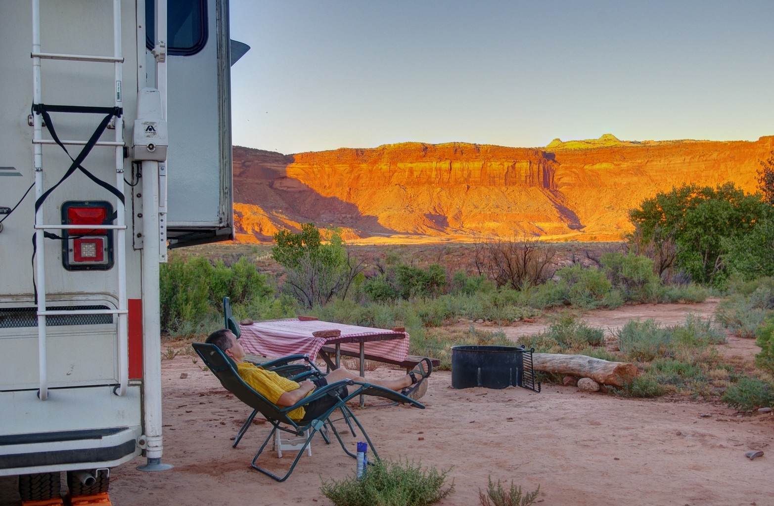 We need to make some serious headway with the work and so stop at Creek Pasture, a free BLM campground, just a few miles outside the park. We work during the day and in the evenings sit outside watching the canyon walls gradually change from their customary orange through ever darkening shades to a rich red, at which point the sun sets leaving them suddenly bereft and looking slightly two dimensional in the growing dusk. It’s very quiet and as the bats emerge in considerable numbers, we start to hear the rapid clicks of their sonar.