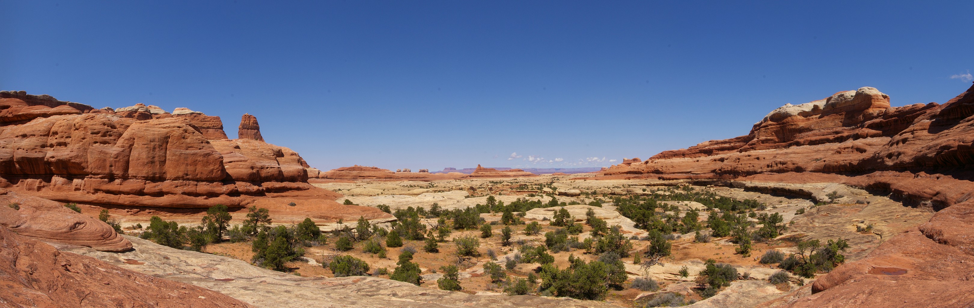 After a wet night at Needles Outpost, we head into the national park and the following day go out on the trails. We plan to follow Big Spring Canyon to its head, climbing up and over the wall separating it from the adjacent Squaw Canyon and come back round to the campground, a distance of about nine miles. It’s a fantastic route and a challenge for those of us with a fear of heights.