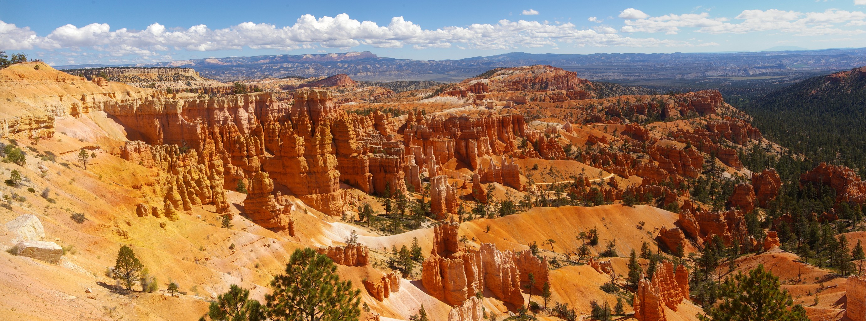 Looking down from the rim, the hoodoos stretch out through the canyon. The colours range from the palest yellows to the deepest reds, the effects of erosion clear in the walls of emerging hoodoos as much as in those left standing alone, separated from their neighbours. It’s a complex and intricate world of incredible beauty, its moods changing with the passing of the sun, indescribably stunning at sunset and sunrise, wonderful at any time. We’ve been here in snow, under overcast skies and in blazing sun: it’s always stunning.