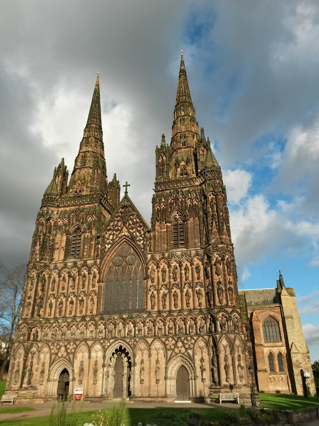 Heading north to Manchester we detour to visit Lichfield Cathedral. The location has been the site of christian worship for thirteen hundred years and the building of the current gothic cathedral began in 1195. Our visit is prompted by Sterling who is reading a novel about the building of a cathedral from the same period and he wants to see an example of the architecture in the flesh.