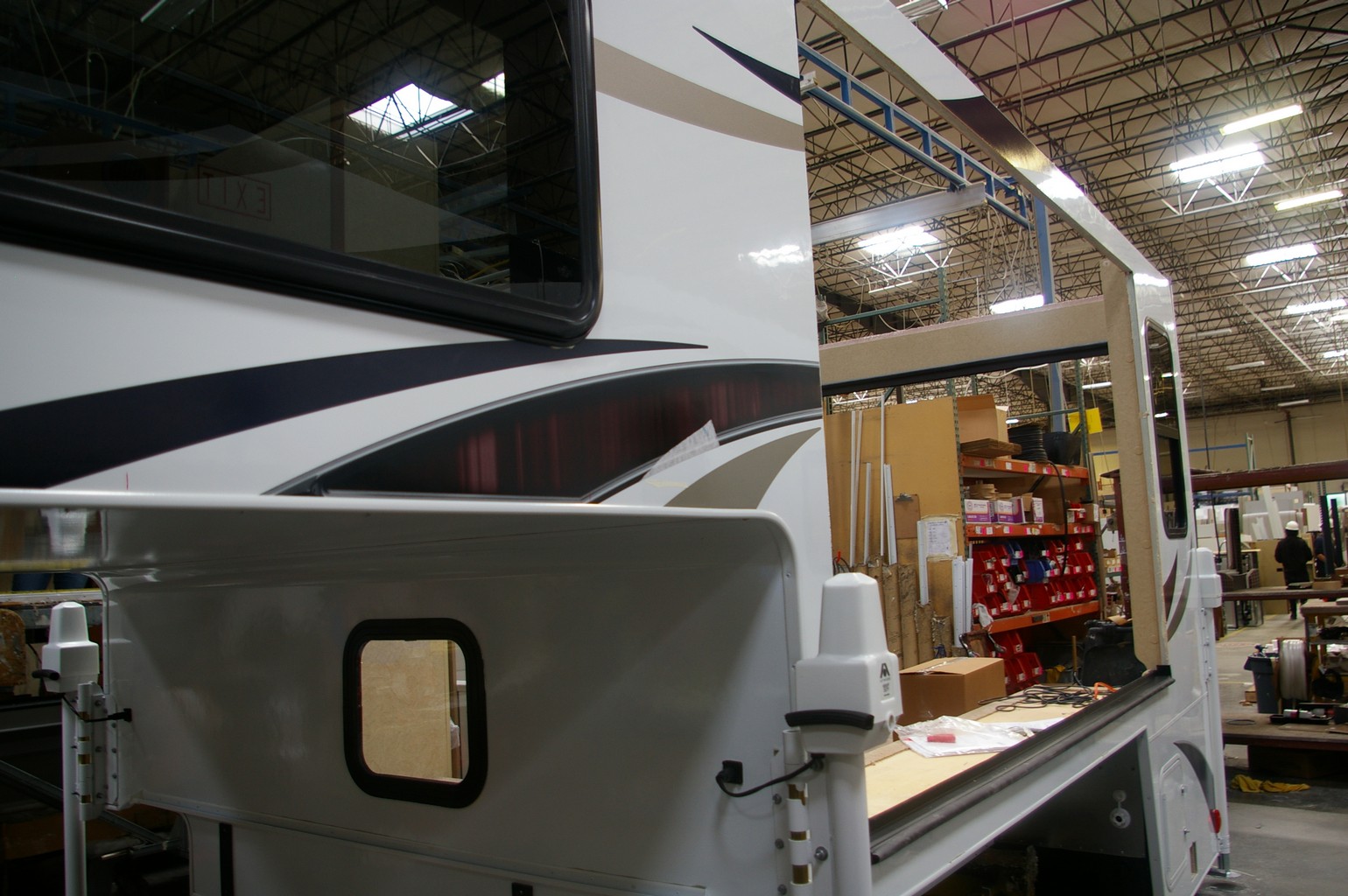 We need some new cabover struts for the camper and so are headed to Lancaster, the home of all things Lance. We decide to go on the weekly factory tour and are interested to discover the major changes in design and production techniques that have been introduced. Many of the major design flaws in our 2003 model have been overcome and there are also some significant improvements. Much of the production has been automated but human error is clearly still alive and well. The kink in this pipe may not be on the scale of our famous example but it’s still evidence of a less than scrupulous attention to detail.