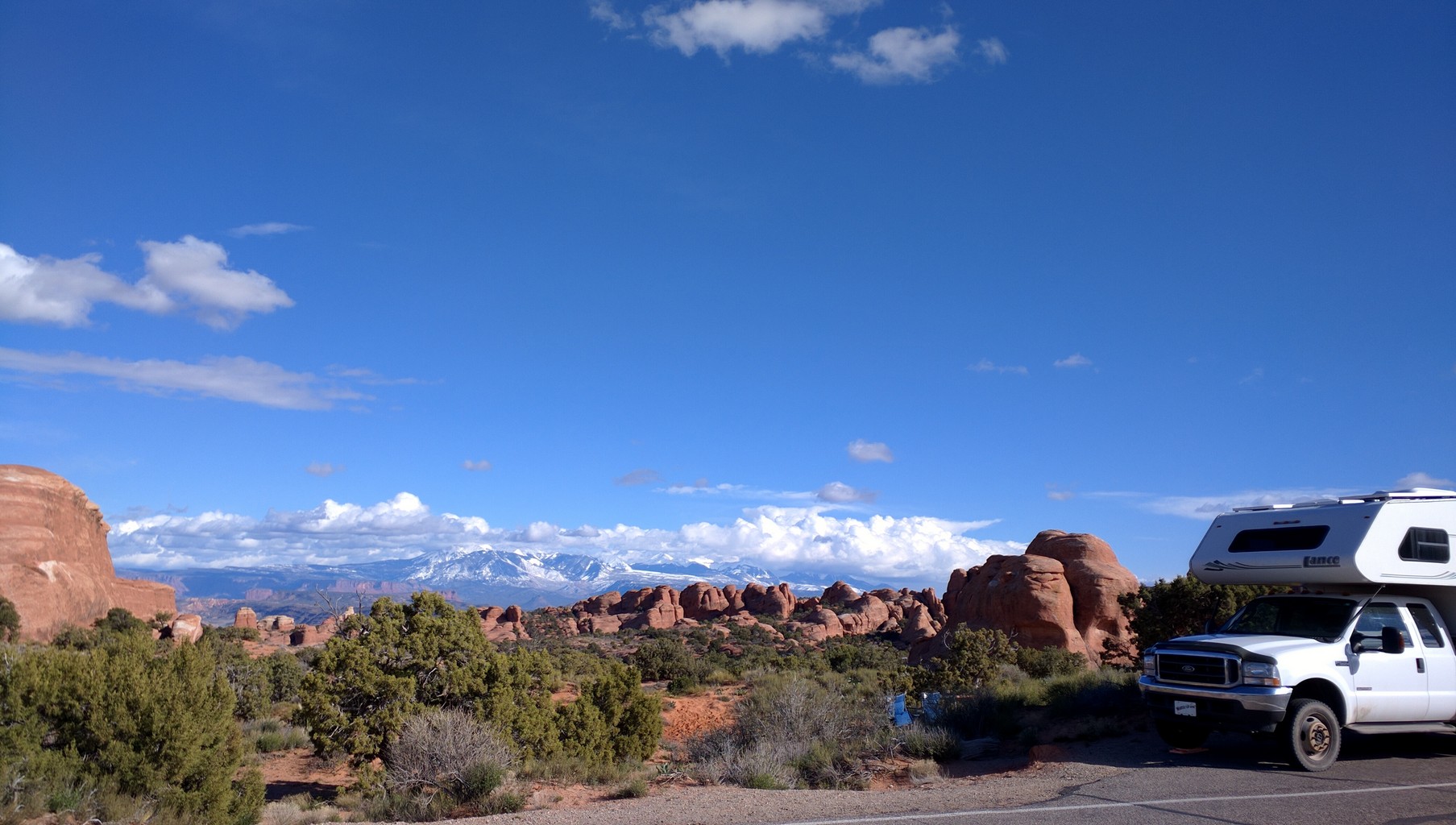 In spite of the increasing crowds, Arches remains one of our favourite parks. Majestic arches, fins and the distant La Sals, hikes with stunning views and a colour pallete that makes the soul expand. We manage to get a last minute campground reservation by sharking for cancellations on-line. We are incredibly fortunate: it turns out to be one of the best sites, the view is simply stunning.