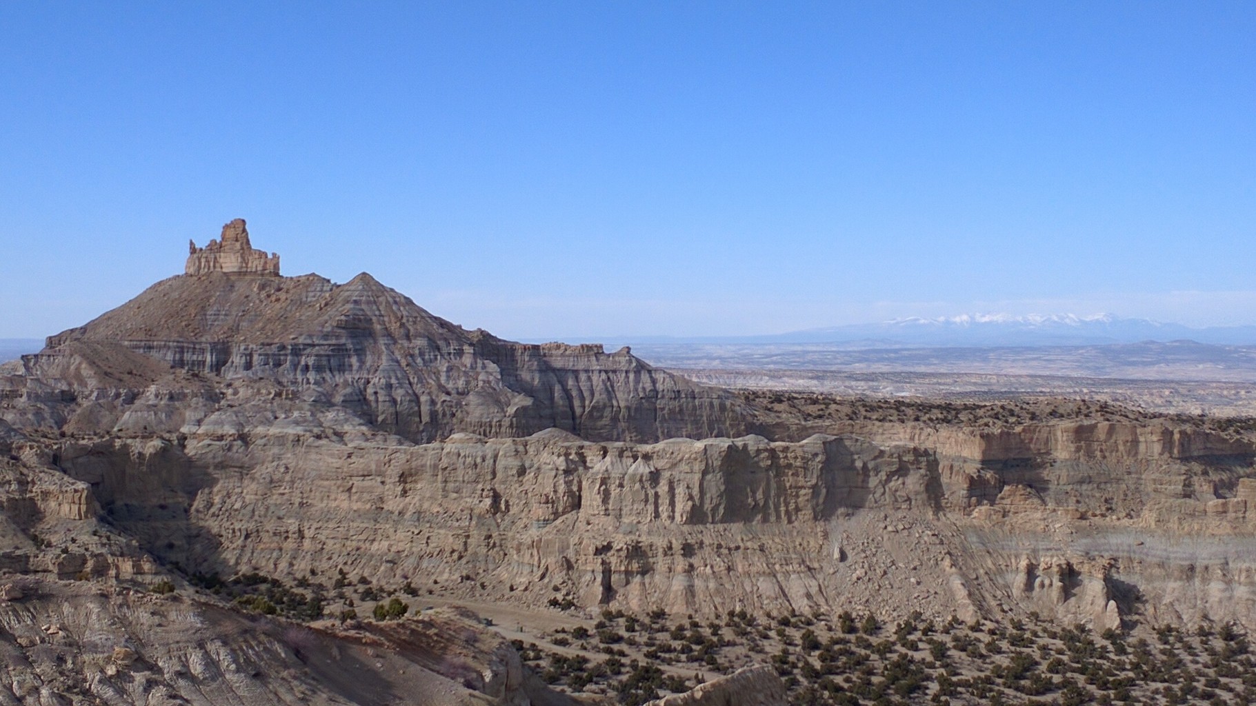 The peak itself stands proud of the deeply eroded badlands of Kutz Canyon where the fabled Great North Road, coming out of Chaco, descended on steps before disappearing below. A small primitive campground gives us great views over the area and some limited opportunities to hike.