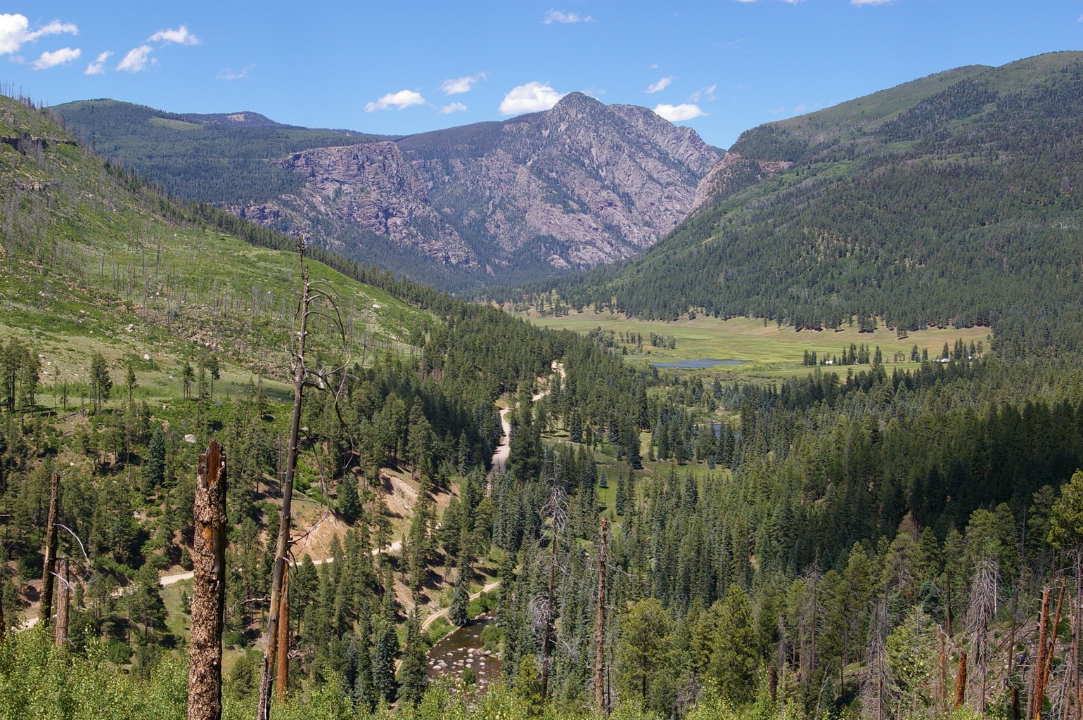 From Pagosa we head for the high Rockies and the highest place we’ve ever camped: 11,700' (3570m) at Lobo Overlook. It’s right by access to a section of the Continental Divide Trail and who can resist that temptation? Being wily, we’ve checked the weather forecast and all looks well until mid-afternoon when thunderstorms are forecast. The sun’s shining as we set out, the profusion of wildflowers breath taking. The forecast proves just a tad incorrect and while Sterling assures me that the gathering cloud and distantly rumbling thunder will only result in “four or five drops”, within a short time, the looming storm has us hurrying back through what are concerningly high, open areas.