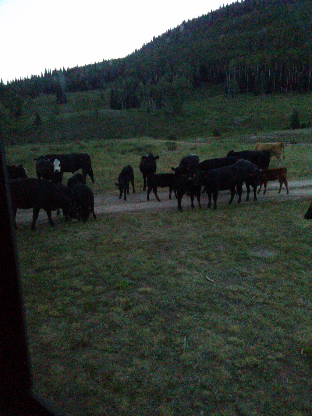A couple of days later, on the way down from the pass, we stop at another dispersed camping location where we are woken in the early morning by the camping being rocked back and forth. Leaping out of bed, Sterling opens the door to find us surrounded by a herd of cattle who seem to have mistaken us for a handy scratching post. They’re startled by the sudden appearance of a sleep tousled human and with some verbal protests move a short distance. We return to slumbers only to be woken again by the sensation of being in a rocking cradle. Firmer words are used by the aforementioned human, the second time round.