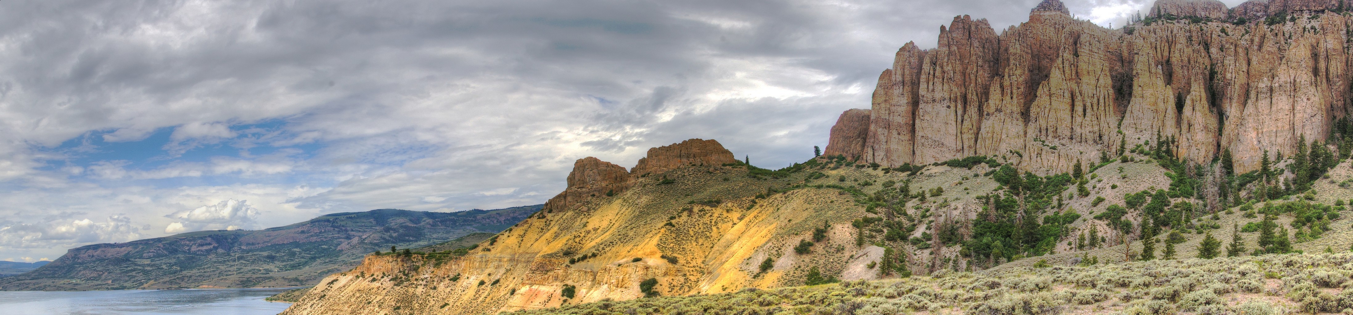 It’s a far cry from the green hills of Wales to the pale dry grasslands surrounding the reservoirs of Curecanti National Recreation Area but that’s where we’re heading next. It’s a haven for boaters, kayakers and those who love fishing but a bit of a disappointment for us. There are a few trails and the short jaunt up to Dillon Pinnacles affords lovely views across the water.