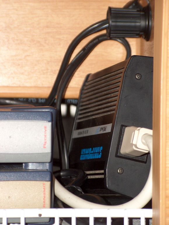 My alternate vision was to rewire the RV's AC system into 2 distinct circuit banks: the air conditioner, fridge, microwave, and converter/charger would be run solely from shore/generator, while the computers and other 110VAC outlets (meaning any other small loads) would be run from the inverter only. Why? Well, my major reason was that I need the satellite modems to have clean, uninterrupted AC power; a fluctuation in shore power or the genset going on/off would disrupt my Internet connection, and at the wrong time, this could actually be disastrous for my work. My approach effectively turns the camper into one big UPS: we have the batteries, we have the inverter, and now our 110VAC outlets are all electrically isolated from any vagaries of hookup or generator power.