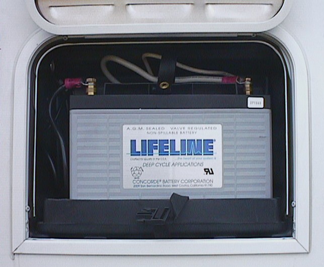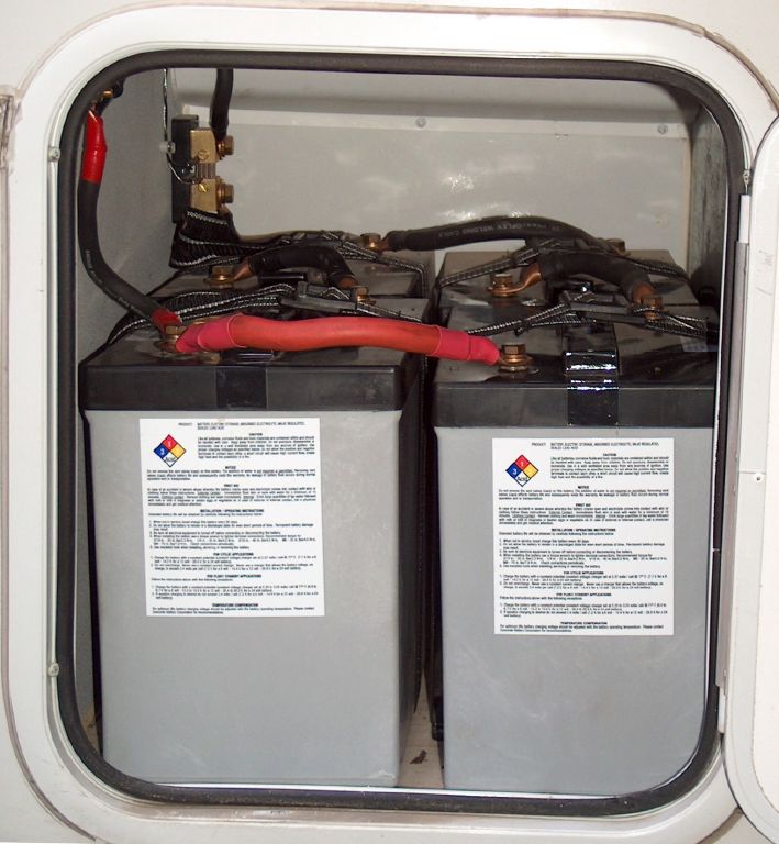 Measurements were taken, and a search began online for the optimal batteries to fill the space. Teresa and I agreed that we strongly preferred AGM batteries like our existing Group 31, she primarily for the safety, me for the maintenance-free and low-internal-resistance aspects as well. A nice bonus to AGMs is that we wouldn't need to vent the compartment. We could fit three more Group 31s in this space, for 315 amp-hours, but Lifeline also makes a 220 amp-hour, 6-volt AGM whose size is almost exactly one-fourth the floor space in question. That will do nicely… Wire a pair in series to make 12 volts, then in parallel with a second pair, for a whopping 440 amp-hours. Yes!