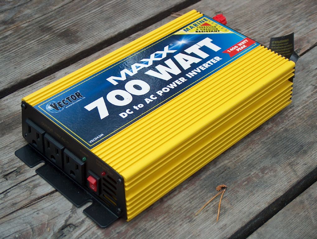 So when I happened across a 700W Vector MAXX for $90 at Boater's World in Portland, Oregon, I bought it. Turns out I shouldn't have been fishing quite so near the bottom; when I got the DC side of it installed a few weeks later, I discovered that it had a cooling fan that was on - and making a racket - whenever the inverter was powered up. In a small space like our camper, this was unacceptable. It put me off finishing the AC side of the installation, in fact, and put me onto the search for a better inverter.