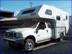 Make that one in SoCal - a 2001 in Los Angeles. The other two fell apart under closer inspection, didn't even cover our even-shorter shortlist. So, after leaving the camper at Douglass for measuring by shop guru Jacob, we cruise south on Highway 99 into the heart of darkness. Two hours later we're at Carmenita Truck Center, inspecting the truck in question. Which, as it turns out, has apparently led rather a hard life; at under 50k miles, it has soft brakes, a mushy transmission, six bald and mismatched tires, and a power steering pump that downright howls. None of which (apart from the steering) the dealer is willing to fix, or even reflect in the price. To add to the insult, he seriously lowballs us on the trade-in value of our F-350. For a moment, we're tempted to buy it anyway - after deciding on used, this is our only option - but fortunately, a last minute snag with CA taxes delays the deal and we come to our senses.