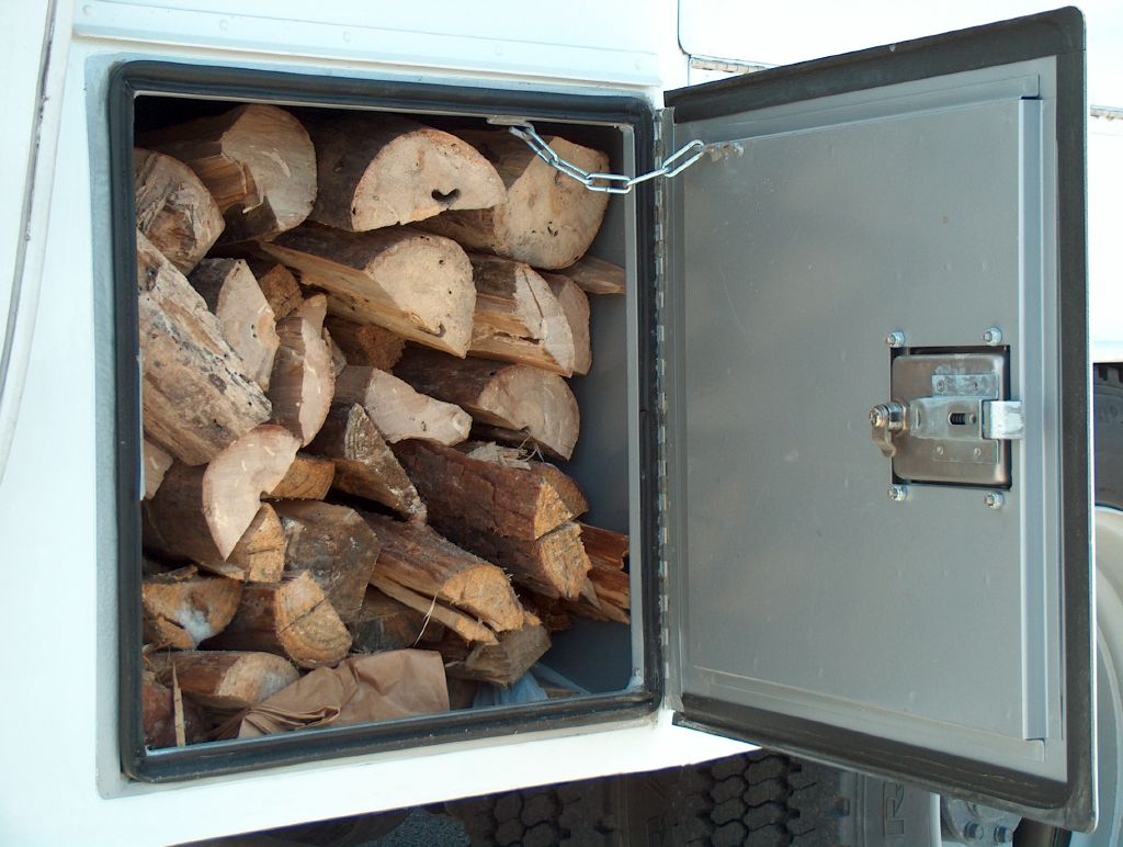 Why bother? By my calculations, it provides us with nearly 68 cubic feet (1.92 m3) of storage that we just didn't have with the pickup. 68 cubic feet! That's almost as much as our whole bathroom (78 cubic feet / 2.2 m3). It's a lot. And perhaps more important than the sheer volume is that we now have the room to organize what we carry, so that (usually) we can find what we're looking for more easily. We keep our shore power extension near the camper's power cord, our water hoses directly below our fresh water fill, that kind of thing.