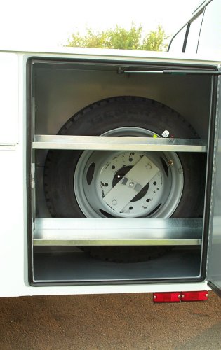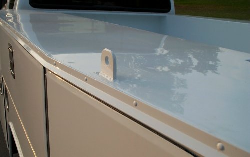Is there anything we don't like about the utility body? Generally, the clearances are a bit too close all around; when laying it out, Douglass didn't allow for enough real-world imprecision. So the body taillights rub against the back of the camper, our front jacks get scraped up by the diamond plate when swung in, that kind of thing. And they didn't cut the wheelwells the right size, so if we move up to beefier tires (as I'd like to), we'll have a problem. Nothing major, but it's annoying.