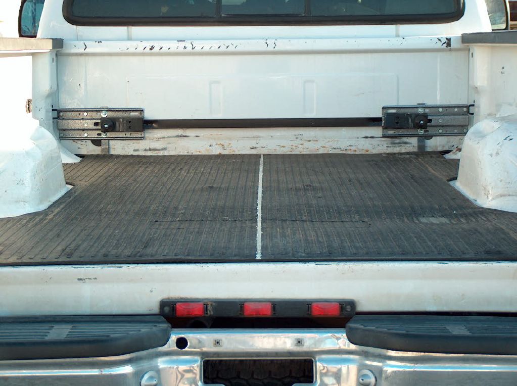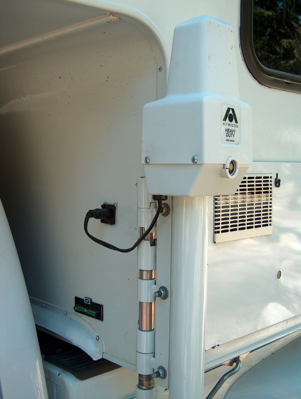 The first mechanical connection is the tiedown system, in our case the strongest one Happijac makes. It's basically four steel turnbuckles that hook to the camper frame on one end and the truck frame on the other, holding our Lance firmly against the front wall of the pickup bed. They are spring-loaded, so they have a little give to them as the two frames involved flex. And they work pretty well, my biggest complaint being that the rear tiedowns attach only to the Ford's back bumper, which isn't really up to the task. We wouldn't have this problem if we had Torklift tiedowns (the major alternative on the market), but they weren't an option from our Lance dealer, and we didn't have the time last summer to put it together ourselves. I'm not too worried about it since the front tiedowns do most of the work – holding the camper into the front of the truck bed, remember? Also, we'll need a new tiedown system when we upgrade the truck anyway, so we don't feel it makes sense to change now.