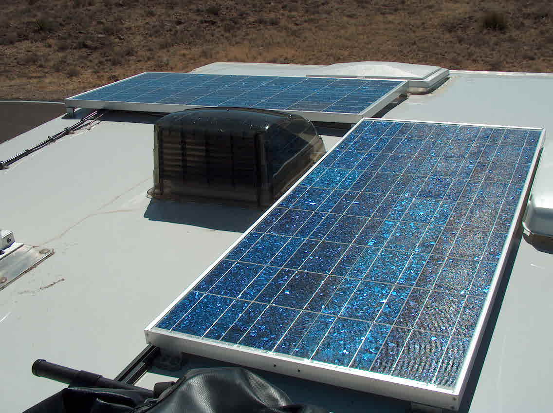 We realized quite early on – before we even had an RV, actually – that we wanted solar panels. The lure of clean, silent electricity from the sun, including the implication of freedom from electric hookups, was undeniable. This desire transformed itself into a genuine need after we hit the road. Time and again we found ourselves far from "the grid" but with me needing to be online for work, necessitating lots of noisy, smelly usage of our camper's LP generator.